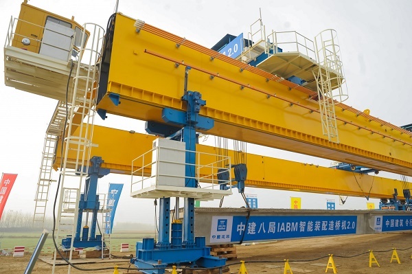 这是由中建八局自主研发,并持续升级的IABM智能装配造桥机2.0版本首次成功运行。一年前,该造桥机1.0版本成功在杭州亚运会配套基础设施工程绍兴越东路北延项目应用。历经一年迭代,这台集智能化、数字化、装配化于一体的大型市政桥梁施工设备再次在中国装配式桥梁建造领域取得突破。